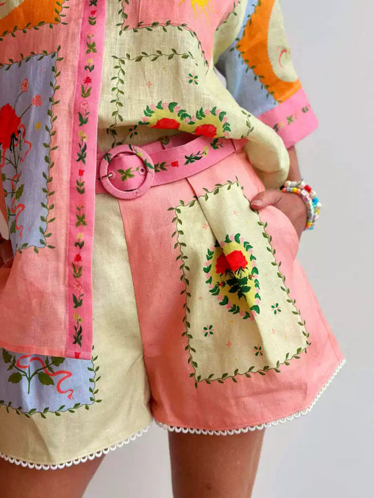 DANILA - ELEGANT LINEN TWO PIECE SET WITH STRIPED DESIGN