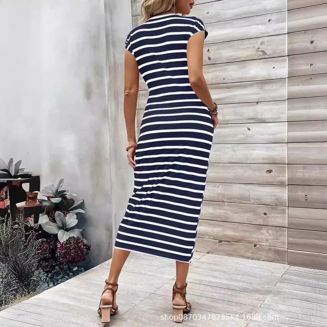This stunning dress is perfect for the modern woman who values style and comfort. Ideal for casual outings, garden parties, or even formal events, it seamlessly fits into your everyday life. The elegant waist tie and striped round neck design add a sophisticated touch, making it a must-have for any fashion-forward individual. Crafted from high-quality materials, this dress promises both durability and comfort, ensuring you look and feel your best all summer long.