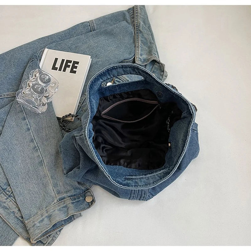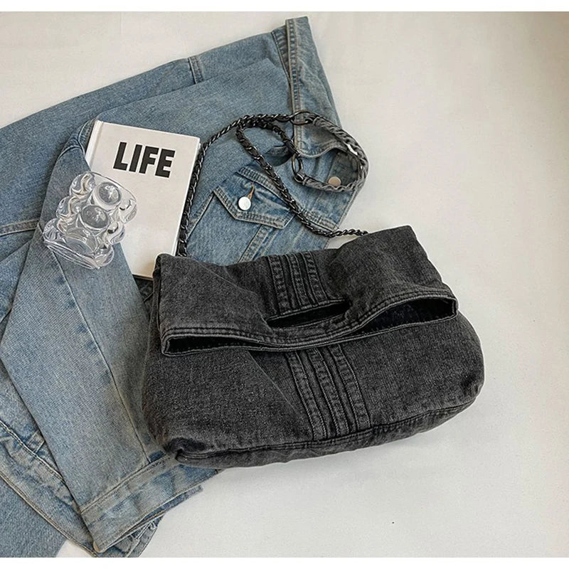 Dalia – Denim Chain Shoulder Bag with Spacious Interior